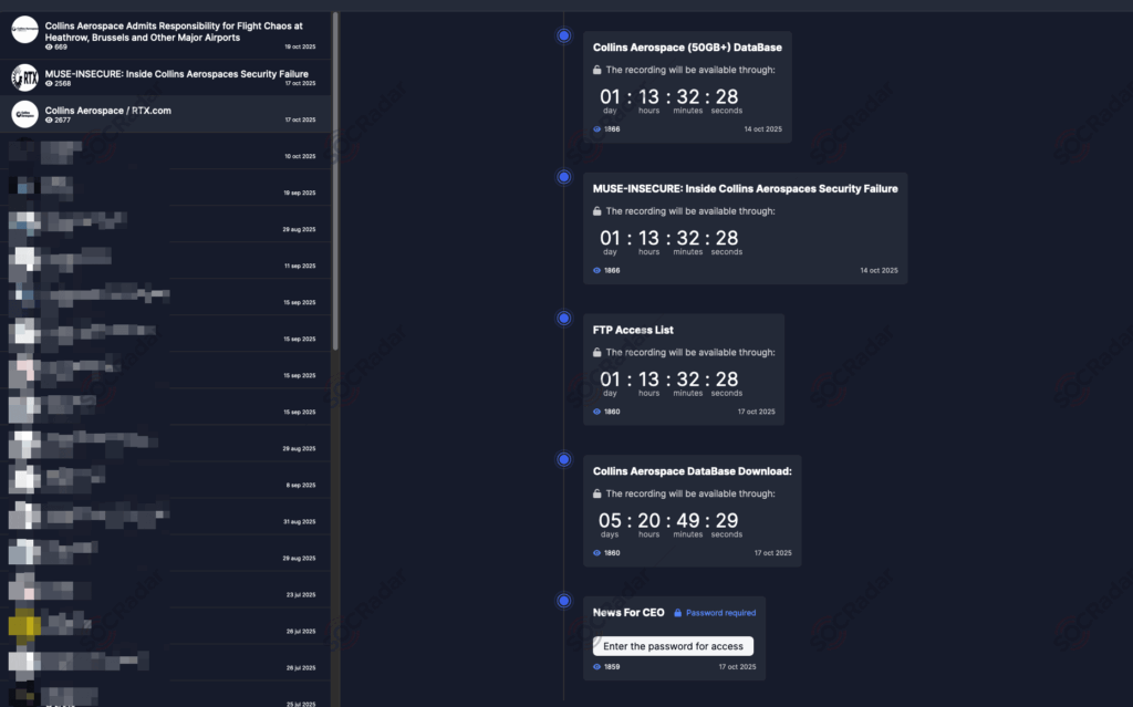 - A “Collins Aerospace (50GB+) DataBase” archive allegedly containing corporate and operational data.